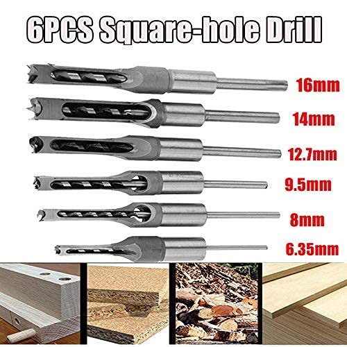 6 Pezzi Trapano Foro Quadrato Mortasatrice Scalpello Set, Legno Drill Bit Set Punte per Mortasatrice Punte Strumenti Utensili per Lavorazione del Legno, 6,4 mm/8 mm/9,5 mm/12,7 mm/14 mm/16 mm