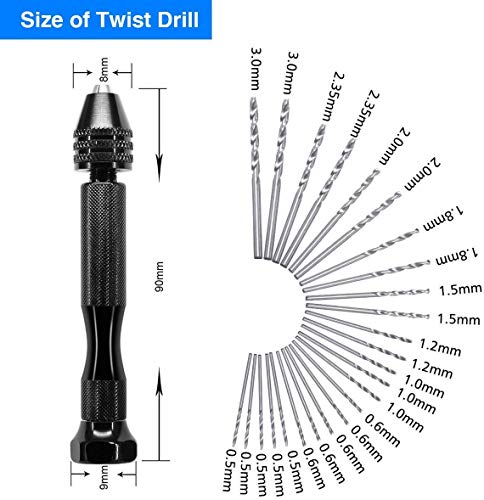 26 pezzi Trapano a Mano Punte Elicoidali,punte elicoidali per trapano Set 25 pezzi Micro Mini Twist Drill Bit Set con 1 pezzo trapano manuale strumenti per trapano manuale e lavorazione del legno