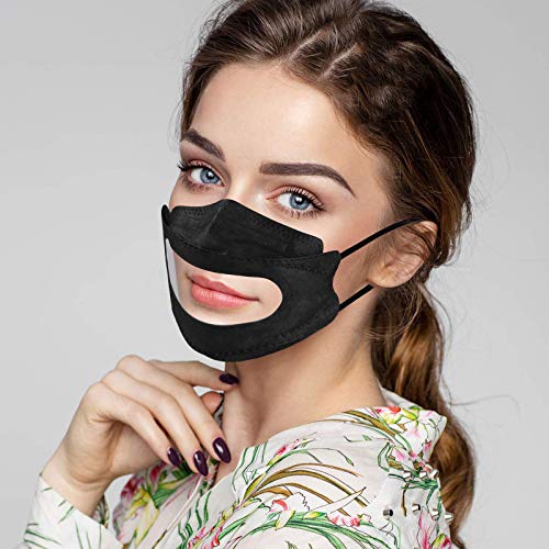 Xjp 50 Pezzi Trasparenti Adulti_Mascherine La Bocca Sorriso Visibile Protezione per Il Viso USA e Getta 3 Strati con Elastici Visiera Bocca Faccia 95% Efficienza Filtraggio Protection (A-1PC)