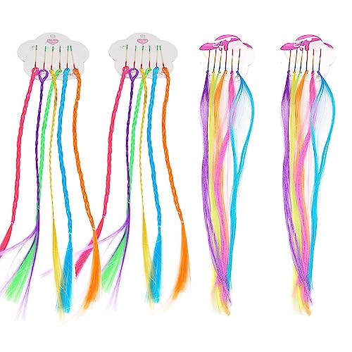 Contenuto della confezione: si ottengono 12 pezzi di trecce sintetiche multicolore e 12 pezzi di capelli lisci colorati, in grado di soddisfare le diverse esigenze.