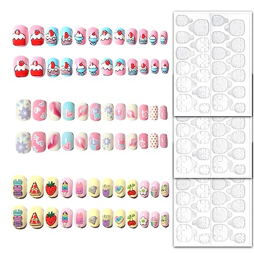 72 pezzi Unghie Finte per Bambini,Premere Pre-incollato Unghie Finte Acriliche,3 Scatola Artificiali Tip Unghie per Donna e Ragazze Adolescenti,Bambini Premere Unghie Bambini Unghie Finte Artificiali