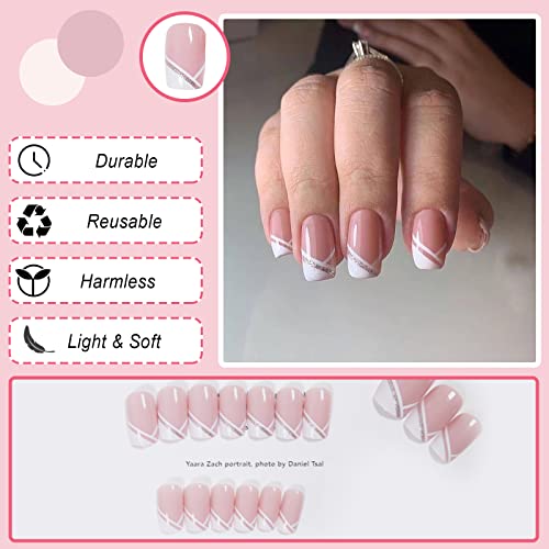 【Salute e durevole】Queste premere sulle unghie francesi sono realizzate con materiali ABS di alta qualità, protezione ambientale, non tossici e inodori, che non causano danni alle unghie e non irritano la pelle. Puoi usarli in sicurezza, indossarli ti farà sembrare più naturale. Sono durevoli e possono durare per 1-3 settimane.