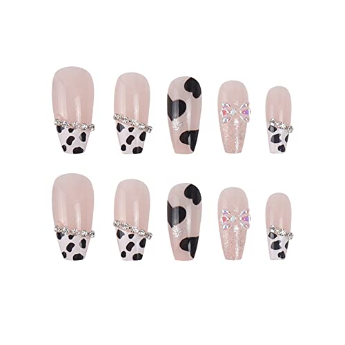 DESIGN RAFFINATO: superficie dellunghia lucida, impreziosita con polvere glitterata o strass, copertura completa, elegante, elegante e bella. Indossare queste bellissime unghie finte può renderti più glamour ed elegante