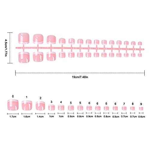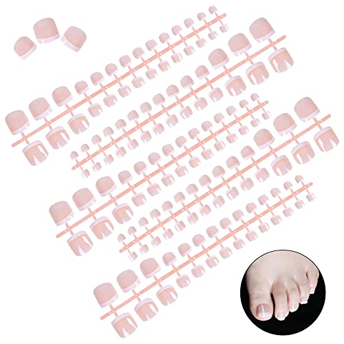 140 Pezzi Unghie Finte Piedi, Francesi False Toenail Naturali Artificiali Copertura Completa Piede Unghie Punte per Donne Ragazze DIY Manicure Unghie Saloni, 14 Misure (A)