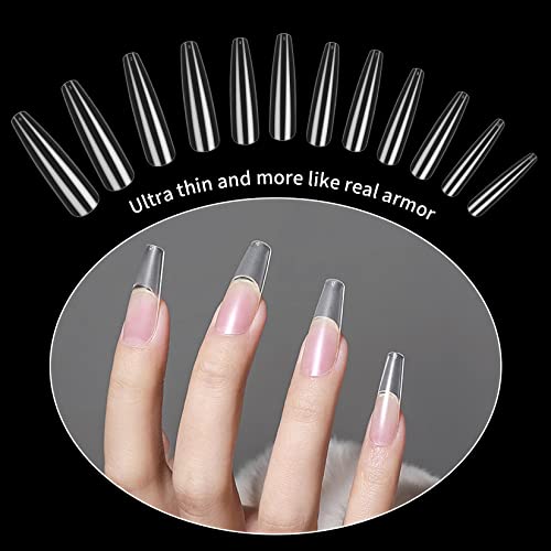 240 Pezzi Unghie Finte Trasparenti, Unghie A Trapezio Extra Lunghe, Copertura Completa Press On Nails, Unghie A Ballerina, Punte Unghie Francesi Copertura Completa per Manicure Salone Fai da Te