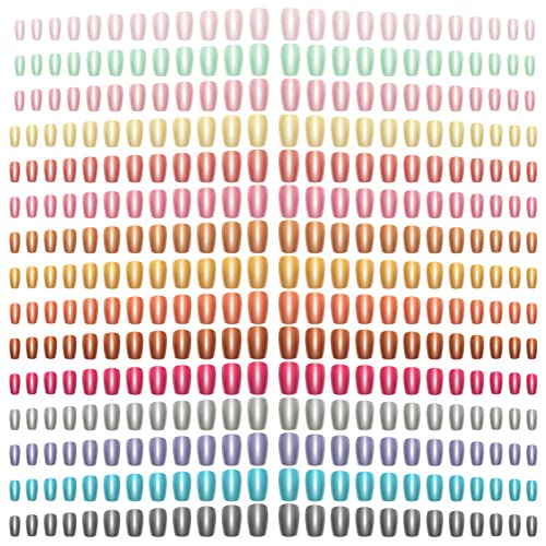 15 Set 360 Pezzi Unghie a Pressione Quadrato Medio Unghie False Lucide Unghie Finte di Ballerina Colorate Unghie Artificiali a Bara Corta Punte per Unghie a Copertura Totale per Donna