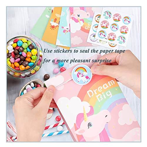 12 Pezzi Unicorno Adesivi Caramella Sacchetto, Sacchetti Regalo di Carta Colorati, Sacchetto di Carta Kraft Unicorno, Sacchetti di Carta Piccoli con Adesivi, per Confezionare Regali Regali Festa