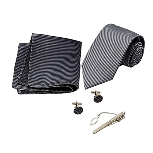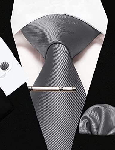 4 Pezzi Uomo Cravatte Set - Cravatta Twill Fazzoletto Classico con Fermacravatta Gemelli Accessori Abito Formale per Papà, Marito, Fidanzato Grigio Scuro