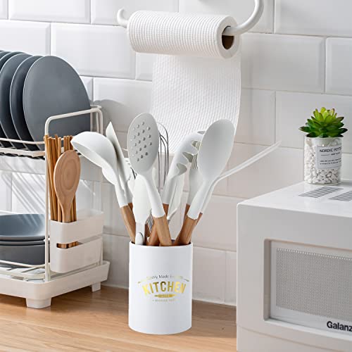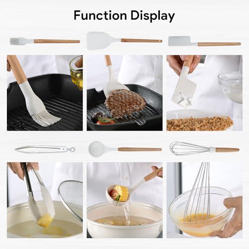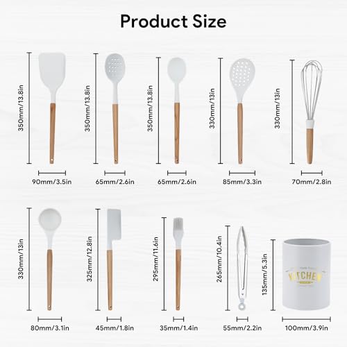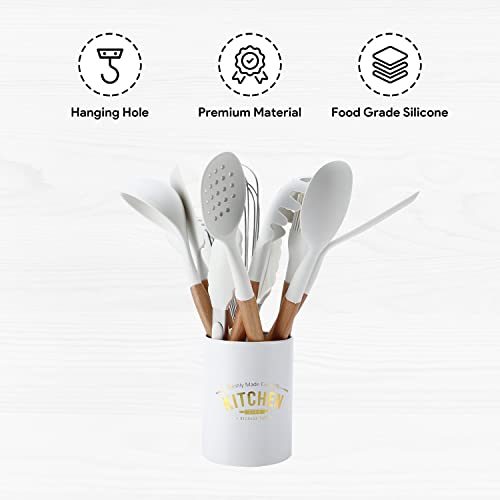 11 Pezzi Set di Utensili da Cucina in Silicone, Resistente al Calore Antiaderenti Utensili da Cucina in Silicone Bianchi con Supporto, Antiaderente Strumento di Cottura