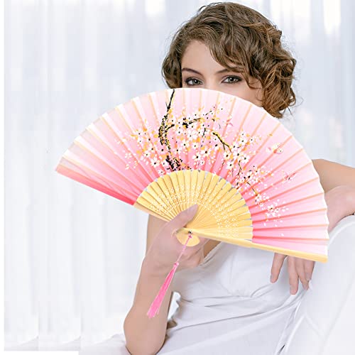 6 Pezzi Ventaglio Portatile Pieghevole,Ventagli Giapponesi con Nappe Tessuto di Seta e coste di Bambù Ventaglio Pieghevole Ventagli a Mano per la Decorazione della Festa di Nozze di Compleanno