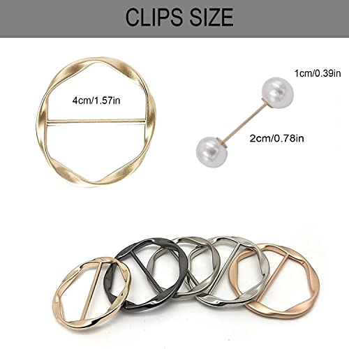 5 Pezzi Vestiti Angolo Annodato Bottone Sciarpa Anello Clip Moda Seta Fibbia Rotonda Metallo Cerchio Chiusura Signora Vita T-Shirt Fermacravatta con Perla Spilla Avvolgere Titolare Decorativo