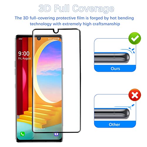 3 Pezzi - Vetro Temperato Compatibile con LG Velvet 5G [Temperato Durezza 9H] [Curvo 3D][Antigraffio][ Anti-impronta] Pellicola Protettiva per LG Velvet 5G