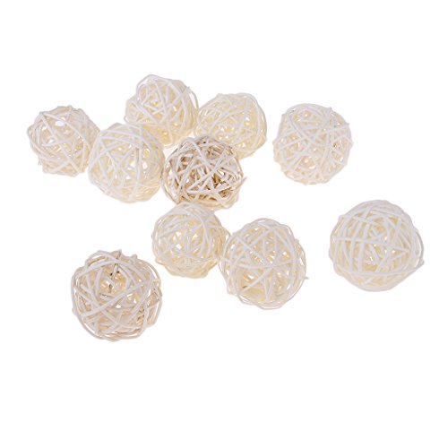 10 Pezzi 5 Cm Vimini Rattan Palla Ramoscelli Sfere Sfere Fai Da Te Ornamenti Artigianali - bianca