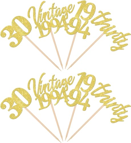 Applicazione: decorazione perfetta per cupcake, biscotti, torte, frutta, brownies, gelati e molto altro ancora, particolarmente adatto per feste a tema vintage 1994, saluti a 30 anni di festa a tema, 30° compleanno, festa a tema, 30° compleanno. Festa a tema anniversario di matrimonio, 30° Decorazioni per cupcake per feste a tema.