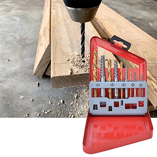 10 Pezzi Vite Estrattore E Sinistra Mano Trapano Po Impostato Lega Acciaio Rotto Bullone Remover 5/64in per 19/64in Rivestimento Trapano Bits con Metallo Astuccio, Forte, Durevole