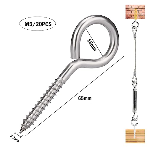 20 Pezzi Vite Occhielli Gancio a Vite M5 Occhielli a Vite in Acciaio Inox 304 Vite ad Anello Occhiello a Vite Gancio Autofilettante Tasselli Occhiello Chiuso 65mm