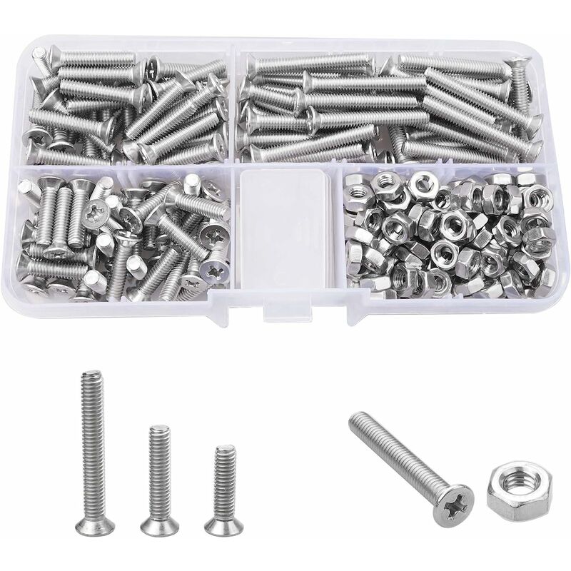 Colore come mostrato Lester:327g [Acciaio inossidabile 304] la testa svasata a croce è realizzata in acciaio inossidabile 304 di alta qualità, che ha un'eccellente resistenza alla corrosione. ruggine e ottima resistenza alla corrosione. ossidazione e buona resistenza alla corrosione. corrosione nell'ambiente duro, che può garantire l'uso ad alta temperatura. a lungo termine. [Bulloni e dadi M4] Riceverai 240 pezzi di bulloni e dadi a testa svasata M4 in 4 misure. Il pacchetto include 40 pezzi M4 * 16 mm;