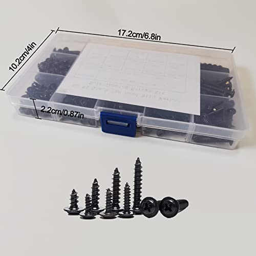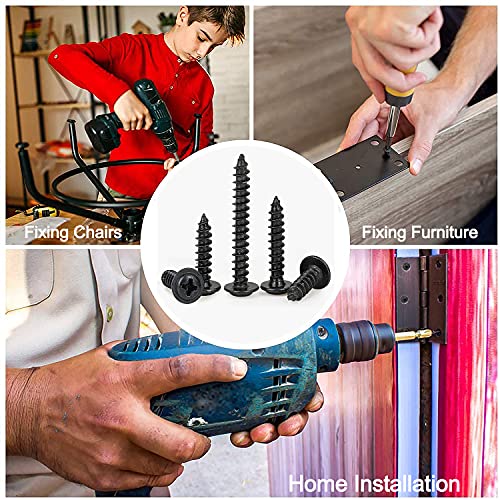 360 Pezzi Viti Autofilettanti Nero, M3 M4 8/12/16/20/25/30mm Viti Per Legno, Viti Testa Tonda Testa Piatta, Acciaio al Carbonio in 11 Misure, Set Assortimento Viti Legno