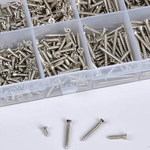 800 Pezzi Viti Autofilettanti M2 Phillips, Testa Piatta Autofilettante Assortimento Vite, Nichelato di Viti per Metallo Kit 4-20 mm, Vite a Testa Svasata per Legno con Scatola per Riparazioni