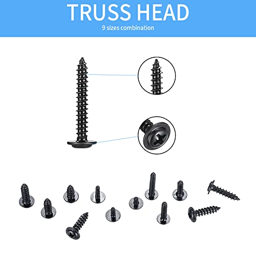 540 Pezzi Viti per Legno Autofilettanti, Viti a Testa Croce Autoforanti, Kit Viti Testa Tonda Acciaio Carbonio Testa Piatta, Viti Nero per Cartongesso Metallo Legno
