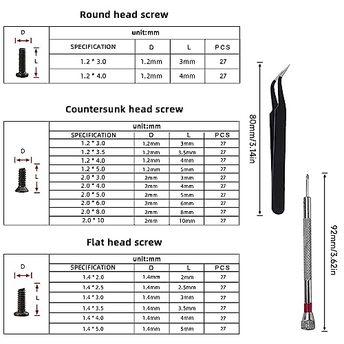 [Ampia Gamma di Applicazioni] - tutti i tipi di viti per occhiali kit riparazione sono comunemente utilizzati per riparare occhiali da sole, occhiali, computer portatili, telefoni cellulari, orologi e altri dispositivi con viti di piccole dimensioni.