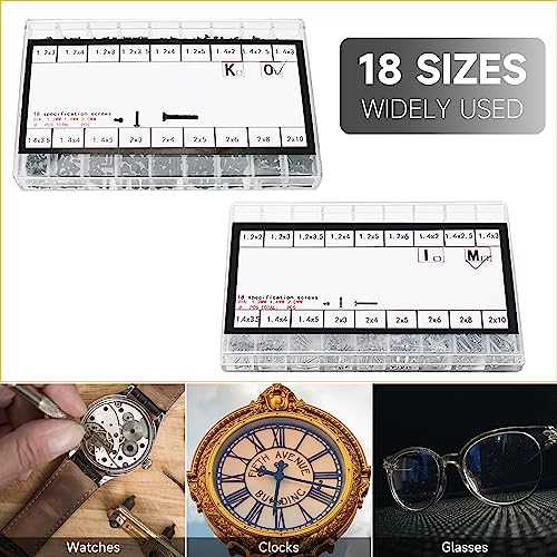 [18 Diverse Misure Miste] - viti per occhiali con circa 27 viti per misura, circa 480 viti per scatola. Le set viti miste più piccole sono disponibili in M1,2/M1,4/M2. Sono disponibili varie misure per soddisfare le diverse esigenze di manutenzione della vostra vita.