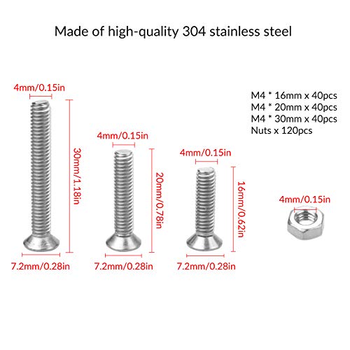 [Bulloni e dadi M4] Riceverai 240 bulloni e dadi a testa svasata a croce M4 in 4 dimensioni. Il pacchetto include 40 pezzi M4 * 16 mm;