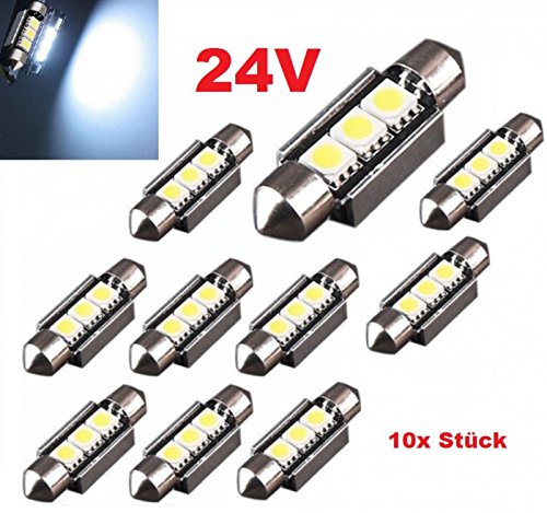 10 X Pezzi 24 Volt C5 W 42 mm con 3 Power SMD - Xenon Bianco - Moderno look e Incredibilmente luminosità intensa soffitten LED per camion con Canbus Resistenza. Ideale come luce targa, bagagliaio neleuchtung illuminazione abitacolo, fussraumbeleuchtung etc. inion®