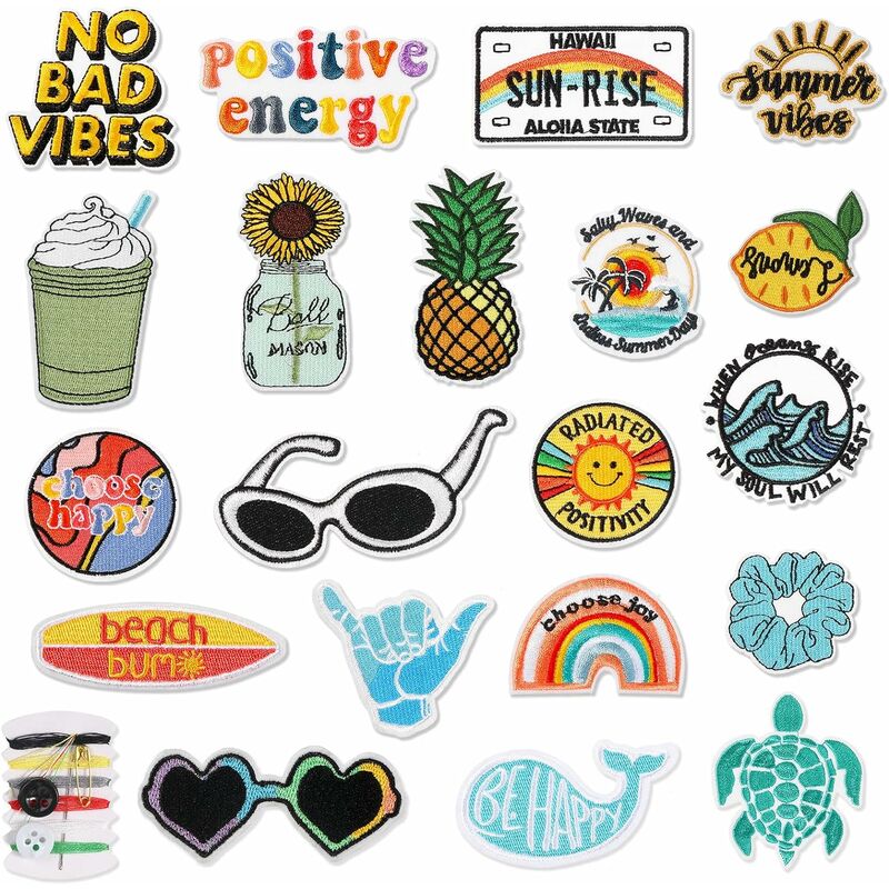 Vari stili per il fai da te: il pacchetto include 20 toppe termoadesive hippie vintage in diverse forme e colori intensi;