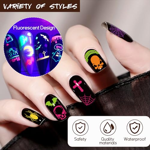 9 Pezzi Water Decals Nails Adesivi x Unghie Stickers per Unghie Adesivi Unghie Nail Art Modelli Fluorescenti a Colori Stili Abbaglianti per la Decorazione Fai da te Delle Unghie di Halloween