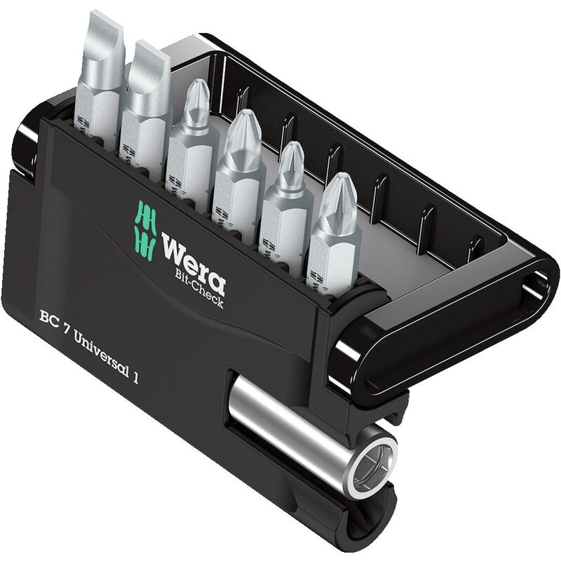 6,5 Raccordo: 1 pz. Dati tecnici Numero pezzi 7 Tipo di prodotto Utensile bit Codolo esagonale per bit C 6,3 Profilo di manovra Giraviti a intaglio Profilo di manovra_ Cacciavite per viti con impronta a croce Phillips Profilo di manovra_ Giraviti per viti con impronta a croce Pozidriv Denominazione originale prodotto Bit-Check 7 Universal 1