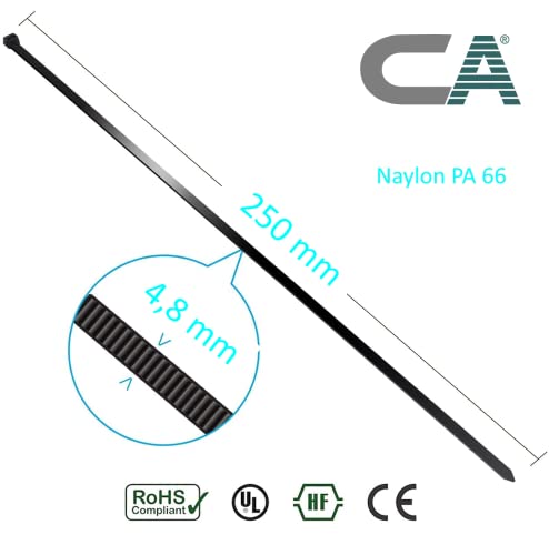 100 pezzi/Fascetta di plastica per cavi/Dimensioni 4,8 x 250 mm/Naylon PA 66/colore nero