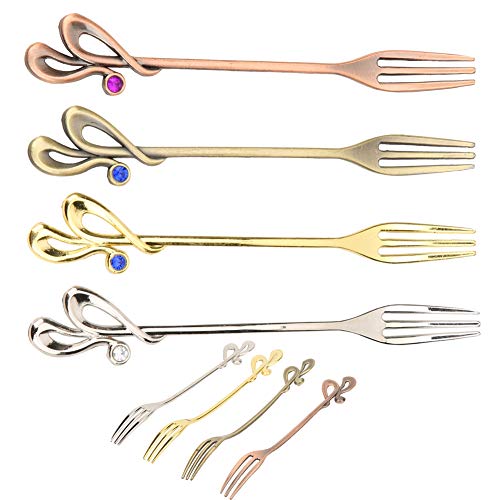 4 pezzi/set Forchetta per frutta Forchette per dessert in lega di zinco stile vintage Forchette per insalata con manico lungo Con motivi di note musicali Forchette per mescolare il caffè Forchette