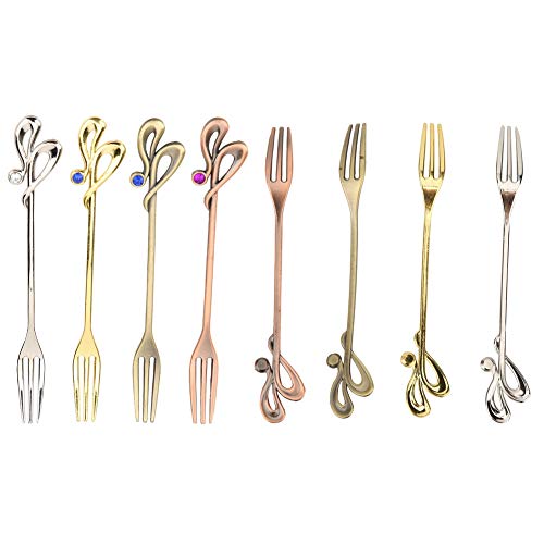 【Forchetta per torta in stile retrò】 : Questo set di forchette da frutta ha una superficie liscia e lucida, lacca placcata con texture opaca, toni delicati, presenta uno stile retrò molto attraente, squisita fattura, può essere usato per mescolare bevande, cocktail o caffè.