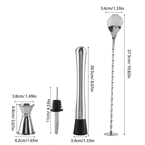 TUTA LEGGERA E COMPATTA IN 4 PEZZI: La confezione contiene quattro strumenti da barista, cucchiaio, barra di miscelazione, beccuccio per bottiglia e misurino. Il materiale in acciaio inossidabile rende il cocktail stick leggero e piccolo, facile da trasportare e riporre;