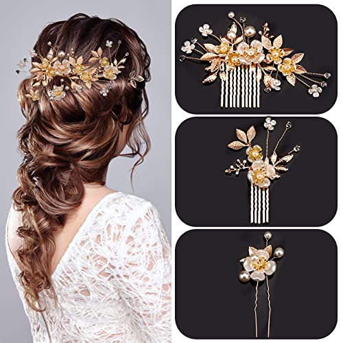 10 Pezzo Accessori Capelli Sposa,Accessori Capelli Donna con Pettinino Sposa e Fermagli per Capelli Sposa Forma U,Accessori Sposa Fermagli per Capelli da Cerimonia per Spose,Donne,Ragazze (Foglia Oro)