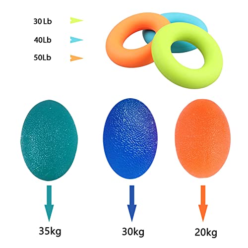 Set di grande valore: Il set per esercizi manuali include 3 palline antistress colorate e 3 anelli in silicone (verde 30 libbre, blu 40 libbre, arancione 50 libbre), diametro 7 cm/2,8", piccolo e portatile, perfetto per in tasca o nella borsa, tu può allenarsi sempre e ovunque.