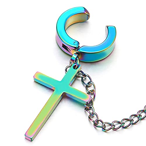 1 Pezzo Arcobaleno Catena Collegamento Chain Due Clip Non-Piercing Croce Orecchini a Cerchio, Clip-on Orecchini, Acciaio