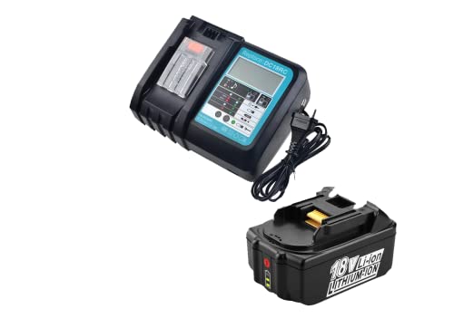 1 pezzo di batteria di ricambio 18V BL1850B e 1 pezzo di caricabatterie DC18RC Compatibile con Makita BL1850 BL1840 BL1850B-2 BL1820 LXT-400, caricabatterie compatibile con batterie 14,4V-18V LXT