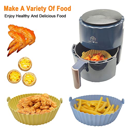 2 Pezzo Cestino silicone per friggitrice ad aria, Diametro 20,5 cm, ricambio per rivestimenti di carta tradizione,Reusable Forno Fodera in Silicone Accessori,per Air fryer,Forni Microonde (Blu+Giallo)