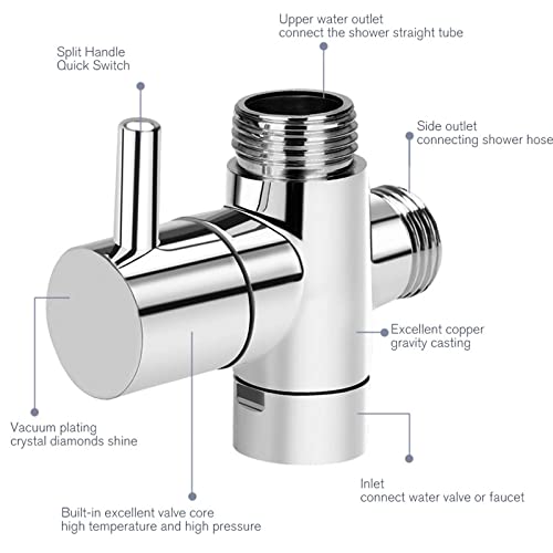 【Compatibilità】: valvola deviatrice per soffione doccia con adattatore a T a tre vie G1 / 2 '', ingresso femmina da 1/2 ", uscita maschio da 1/2". Si applica alla maggior parte dei soffioni e dei bracci doccia. La valvola dell'interruttore della doccia è adatta per i rubinetti del lavandino in cucina o in bagno,
