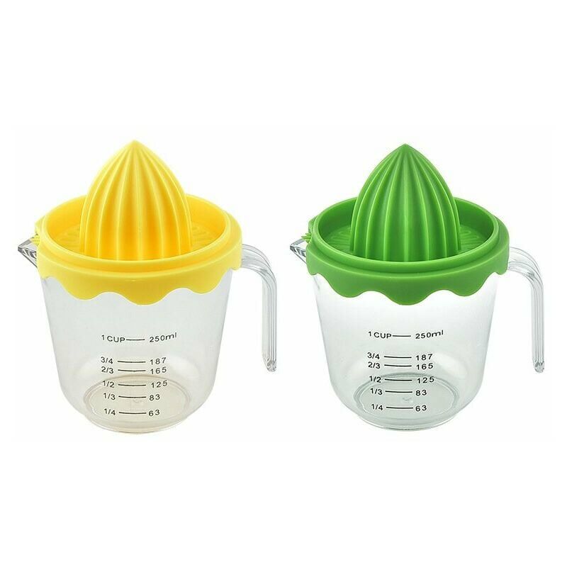 Utensile da cucina 2 in 1: spremiagrumi per limoni e arance con beccuccio antigoccia Recipiente graduato: il contenitore dello spremiagrumi manuale ha una capacità di 250 ml e dispone di pratiche tacche di misurazione durante la cottura o DESIGN OTTIMIZZATO: il design unico dello spremiagrumi manuale senza BPA consente di estrarre i succhi in modo efficiente con una presa comoda. La parte superiore è fissata al contenitore per una migliore stabilità durante l'estrazione ATTENZIONE: Questo estrattore di succo è rimovibile e facile da pulire, puoi metterlo in lavastoviglie. Piedistallo impilabile per una conservazione compatta Non specificare il colore, fai attenzione a non sparare A causa della misurazione manuale, il prodotto che ricevi potrebbe presentare un leggero errore di dimensioni A causa dei diversi monitor, il prodotto che ricevi potrebbe essere leggermente diverso dall'immagine La quantità effettiva di consegna è di 1 pezzo (il colore è casuale)< /p>
