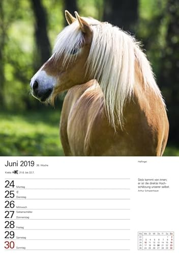 Pferde 2019 Wochenplaner: 53 Blatt mit Zitaten und Wochenchronik