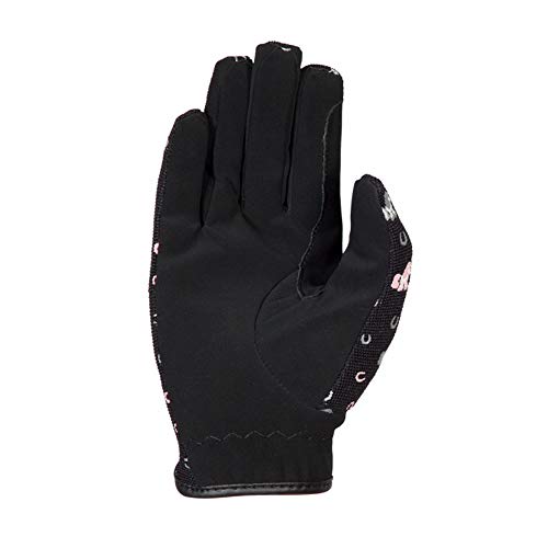 PFIFF 102873 - Guanti da equitazione "Lucky Pony" per bambini, 8 taglie, nero/rosa