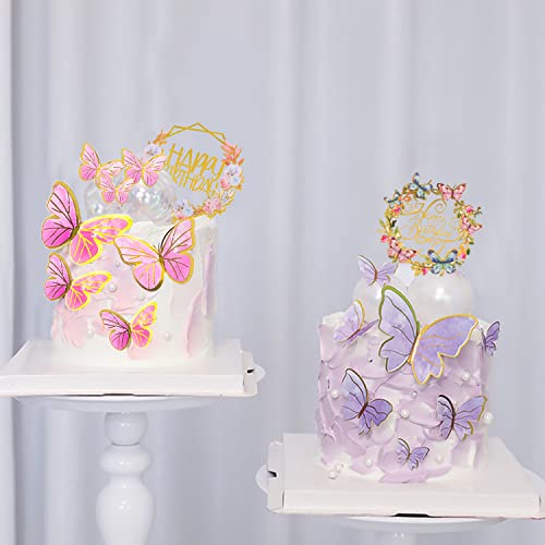 PFLYPF 27 decorazioni Farfalla, 2 inserti per torta in acrilico, accessori per decorazione torta di compleanno Farfalla, decorazione cappello a forma alta, forniture per festa di nozze