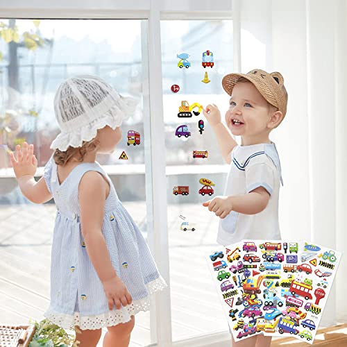PFLYPF 14 fogli adesivi 3D per bambini, adesivi per veicoli per auto, escavatori aerei, moto, simpatici adesivi tridimensionali, adatti per ragazzi e ragazze.