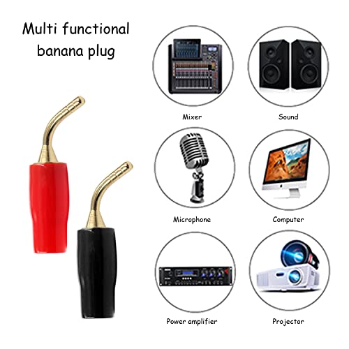 PFLYPF 8 spine a banana, 2mm jack cavo di collegamento del cavo, design curvo, rame puro placcato oro spina, adatto per cavo audio, chitarra, audio, altoparlante (nero, rosso)