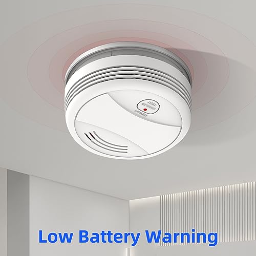 Buon partner per la sicurezza della famiglia:Sensore fotoelettrico di presa d'aria a 360° per rilevare il fumo in tutte le direzioni, fornendo la massima protezione per ogni stanza della casa. Stato di allarme: il dispositivo emette un segnale acustico continuo e il LED rosso lampeggia, il suo cicalino da 90 dB è abbastanza forte da avvisare tutti i presenti nella stanza.