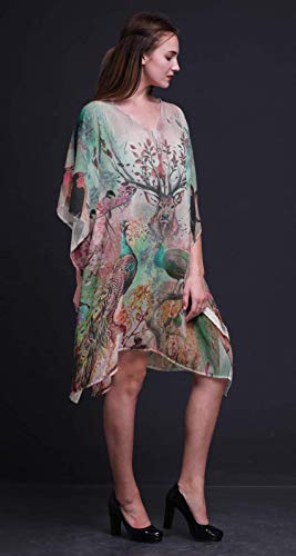 Phagun Arancia Pavone Uccello Short Caftan Midi Dress Beach Swimwear Cover up Womens Kaftan-XL-3X