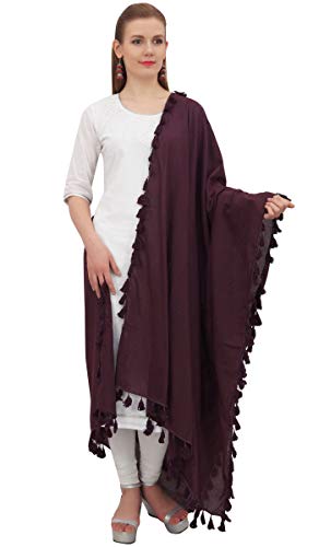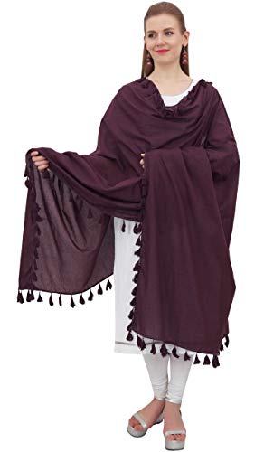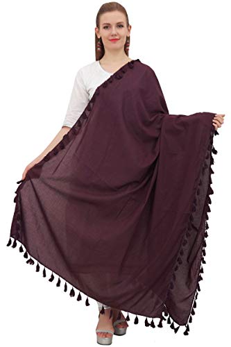 Phagun cotone del collo Wrap indiano Dupatta Chunni lunga stola nappa Sciarpa-Brown